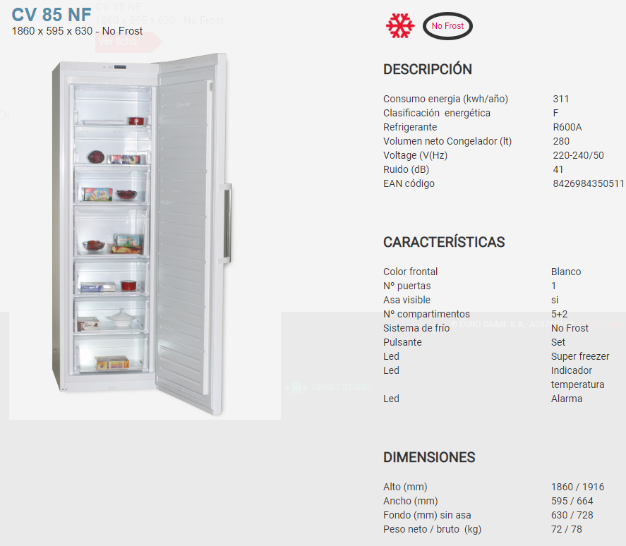 CONGELADOR NO FROST 1 PUERTA BLANCO L595XF630XA1860MM ROMMER MODELO CV85 NF BLANCO