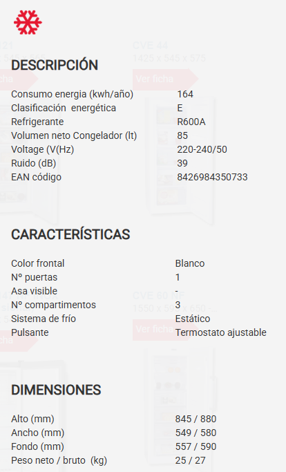 CONGELADOR, 3 CAJONES, ROMMER MOD CVE116, MEDIDAS 549 X 557X 845 MM.