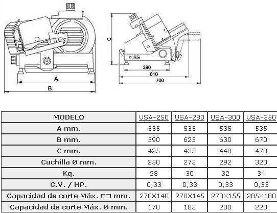 Cortadora de alta gama, carroceria inox., ideal para charcuterias-Aro protector cuchilla.Espesor de corte: 0-16 mm. bastidor de aluminio anodizado.Cuchilla alemana, dureza 65 Hrc,Afilador incorporado sistema automático-Motor con ventilación forzada, logrando una temperatura baja de funcionamiento