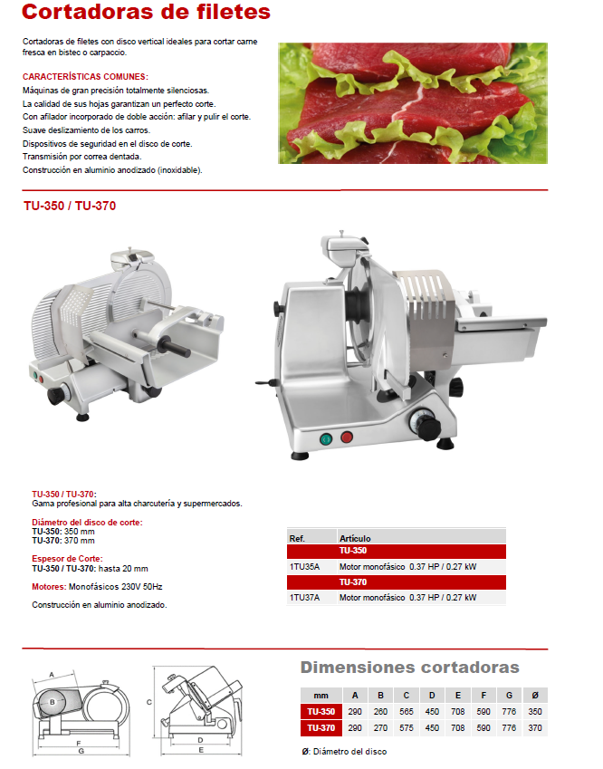 CORTADORA DE FILETES DE 350 MM.GROSOR DE CORTE HASTA 15MM MOD TU 350
