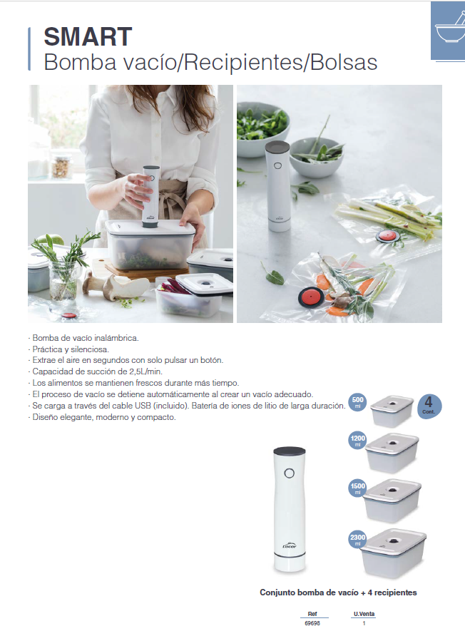 BOMBA DE VACÍO PARA RECIPIENTES Y BOLSAS CON VÁVULA ,INCLUYE 4 RECIPIENTES) LACOR 69698