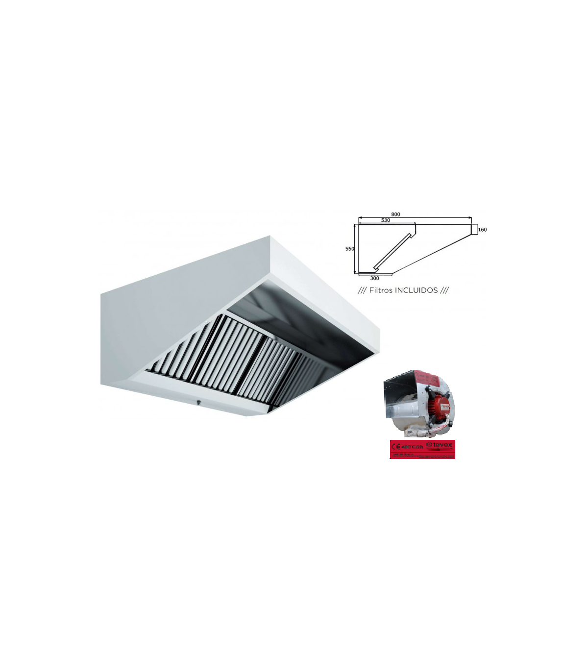 Ideales para aplicar en instalaciones pequeñas , en las que su óptima relación calidad precio las hace imbatibles , Canal recogegrasas con tapón de drenaje, cantos apaisados para evitar cortes, Filtros de lamas incluidos ,Ventilador de 3/4 CV tipo 9/9 400ªC 2 horas trifásico