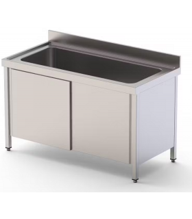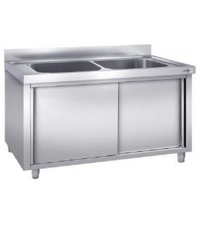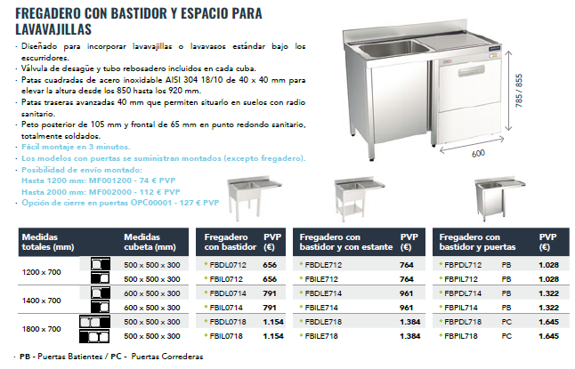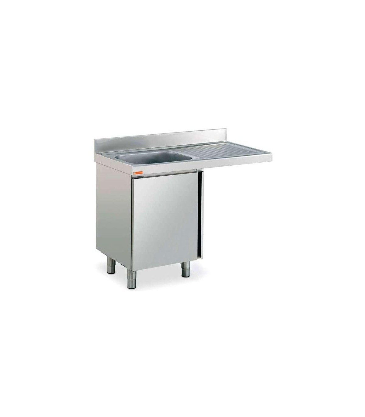 MUEBLE FREGADERO 1400X700X850mm 1 CUBETA+1 ESCURR. CON PUERTAS CORREDERAS ESPACIO LAVAVAJILLAS ACERO INOX. MOD. FBPIL714