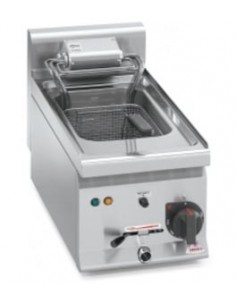 Excelente freidora eléctrica doble de 10+10 litros con una potencia de 2x6kws a 400V,El sistema de freído al mismo tiempo que mantiene inalteradas las características organolépticas del aceite permite cocinar de forma sana limitando los cambios de aceite con un notable ahorro.Medidas H800xF700xH290mm