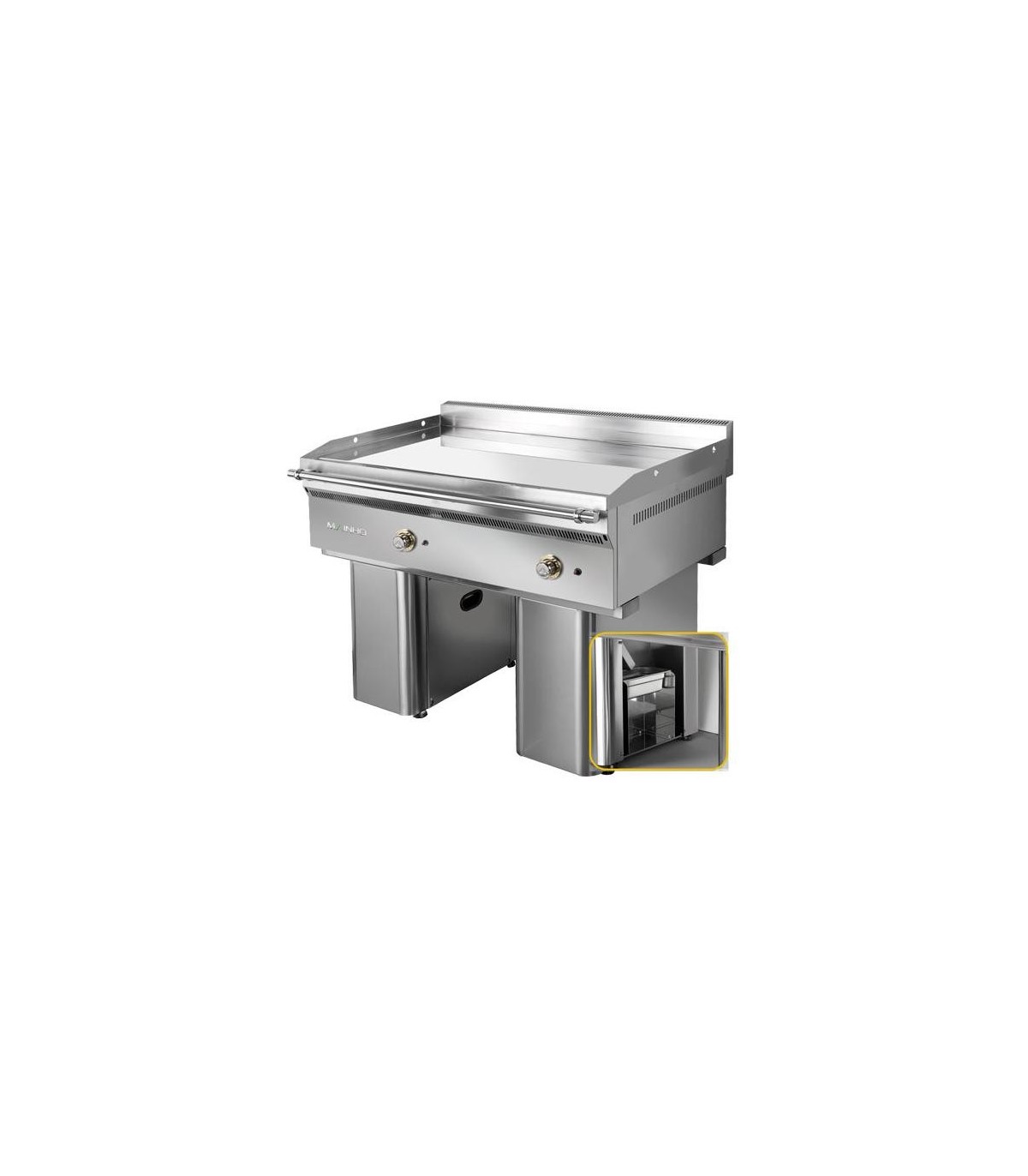 Excelente plancha rápida de gran rendimiento con placa de cromo duro de 20 mm de espesor y mueble en acero inox..Válvulas termostáticas EURO-SIT.Encendido por piezoeléctrico y piloto.Cubetas recogegrasas de gran capacidad (GN 1/3 x 10 h)situadas en el interior de cada pie/soporte.