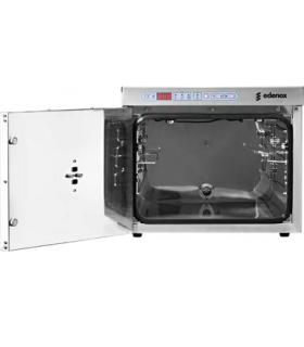 Fabricado en acero inoxidable de alta calidad, este horno destaca por su robustez, higiene y fácil limpieza, además incopora puerta con doble cristal que mejora el aislamiento térmico y reduce el consumo energético..