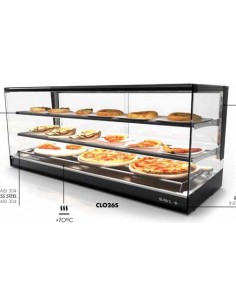 Vitrina caliente de sobremesa ideal para presentación y exposición de productos calientes como pizzas, bollería, bocadillos, etc,...
