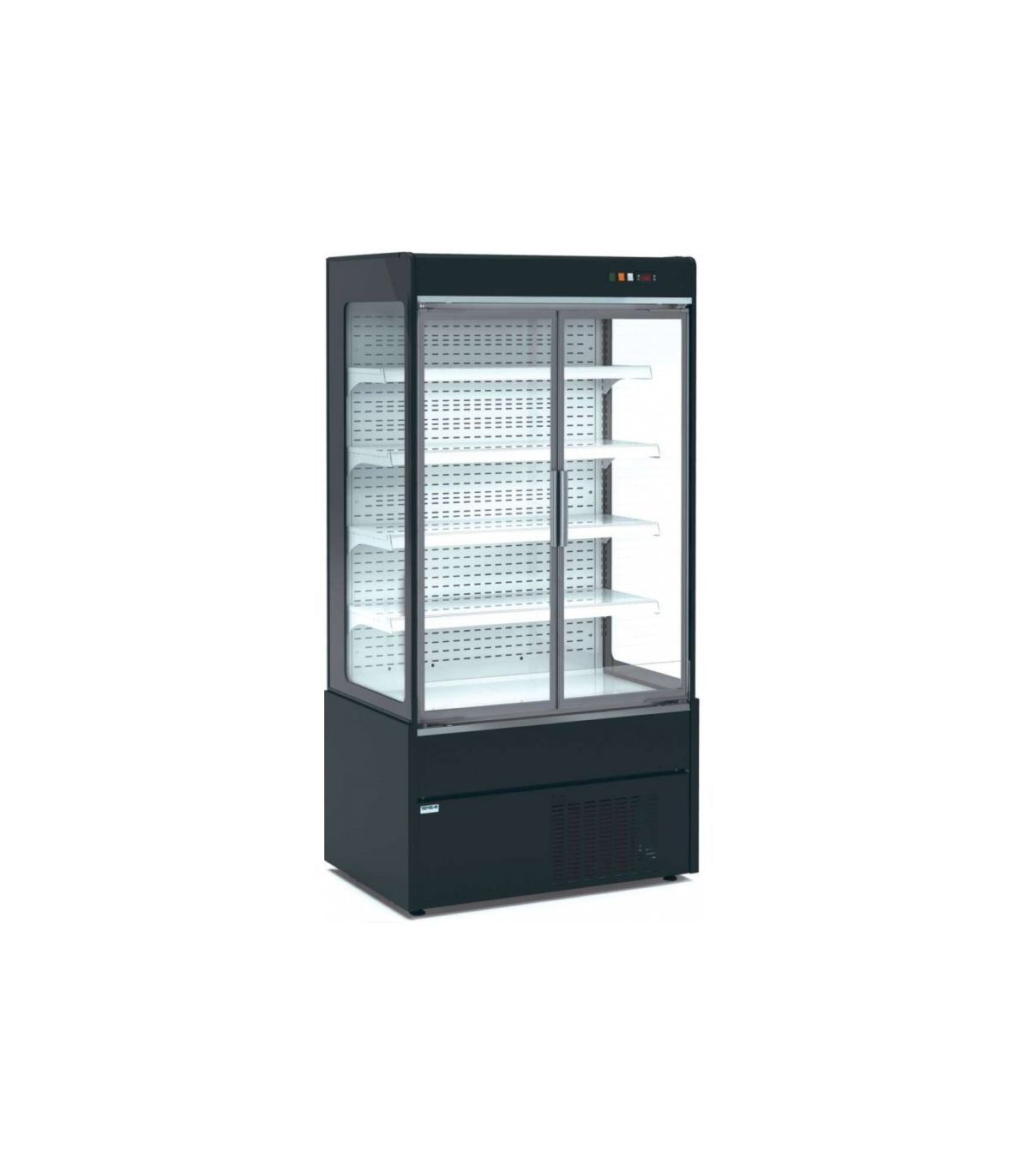 VITRINA MURAL REFRIGERADA CERRADA L1020XF700XA1900MM NEGRA,4 ESTANTES,LUZ LED Y CORTINA NOCHE MODELO MAE100PV-N