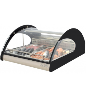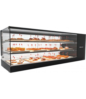 Simpático diseño de expositor refrigerado, muy versátil, para heladerías, yogurterias o buffets desayuno.Sistema de cerrado en acero inoxidable para mantener resguardado el producto en los momentos de no uso.Cristal templado.Acabado en forma diamante para la optimización del espacio visual.Capacidad para 8 GN1/6x65). Posibilidad bandejas de metacrilato transparente.Iluminación por Leds. Sistema de cierre de la cristalera para mantener resguardado el producto en los momentos de no uso, ver foto.